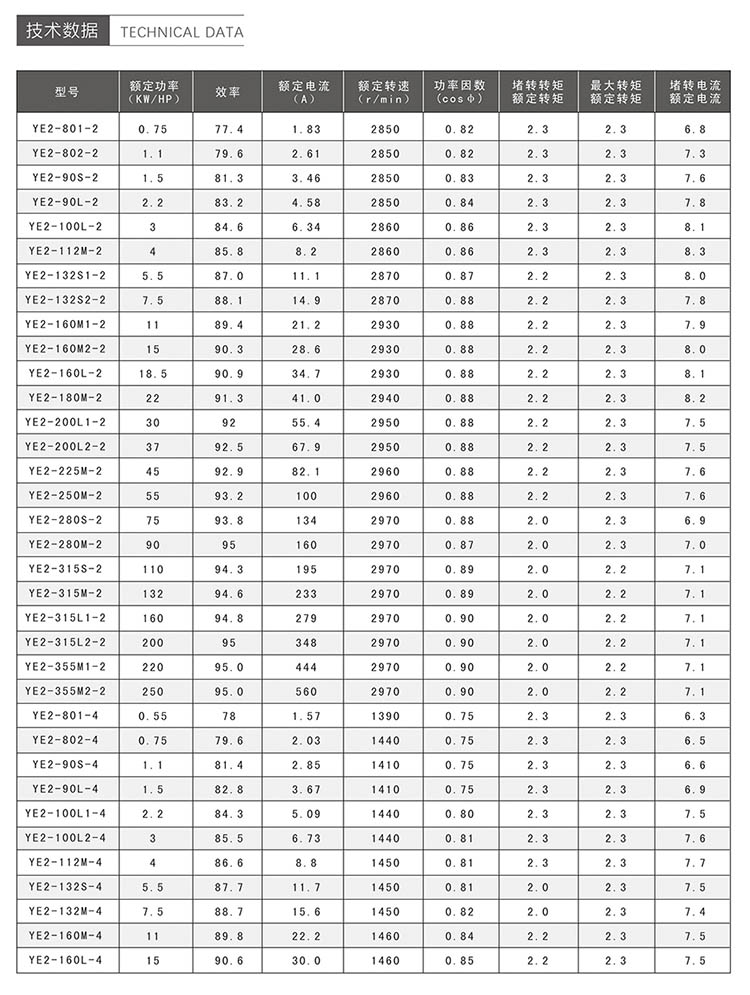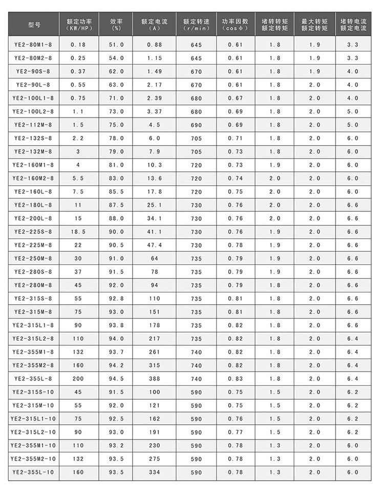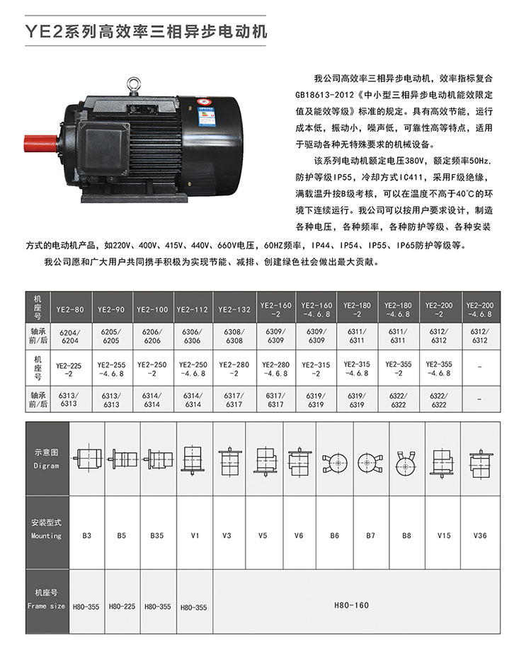 我公司高效率三相異步電動機,效率指標符合GB18613-201《中小型三相異步電動機能效限定值及能效等級》標準的規定。該系列電動機具有高效節能,運行成本低,振動小,噪聲低,可靠性高等特點,適用于驅動各種無特殊要求的機械設備。 該系列電動機額定電壓380V,額定頻率50Hz,防護等級IP55,冷卻方式IC411,采用F級絕緣,滿載溫升按B級考核,可以在溫度不高于40℃的環境下連續運行。我公司可以按用戶要求設計,制造各種電壓,各種頻率、各種防護等級、各種安裝方式的電動機產品,如220V、400V、415V、440V、660V電壓,60Hz頻率,IP44、IP54、IP55、IP65防護等級等。 我公司愿和廣大用戶共同攜手積為實現節能、減排、創建綠色社會做出大貢獻。