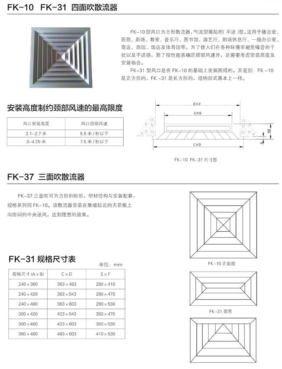圓形散流器一般用于冷暖送風。通常安裝在頂棚上。圓形散流器 專業(yè)生產(chǎn)各種方形散流器、圓形散流器、百葉風口 圓形散流器一般用于冷暖送風。通常安裝在頂棚上。其吹出氣流呈貼附(平送)型,其結構為多層錐面形。由于室內(nèi)誘導氣流大于排風量,因此吹出氣流減速較快。因此相對任意大小面積來說可以供給較大風量,而且在給定的風量范圍內(nèi)擴散半徑的大小變化。