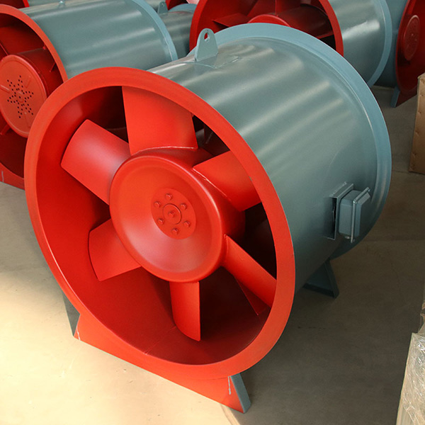 消防排煙風(fēng)機(jī)主要有葉輪,機(jī)殼,集流器,導(dǎo)流片,電動(dòng)機(jī)等部件組成。葉輪采用有子午加速特點(diǎn)的扭曲翼形葉片焊接在輪殼上,經(jīng)動(dòng)平衡檢驗(yàn),超速測(cè)驗(yàn),有良好的空氣動(dòng)力性能。